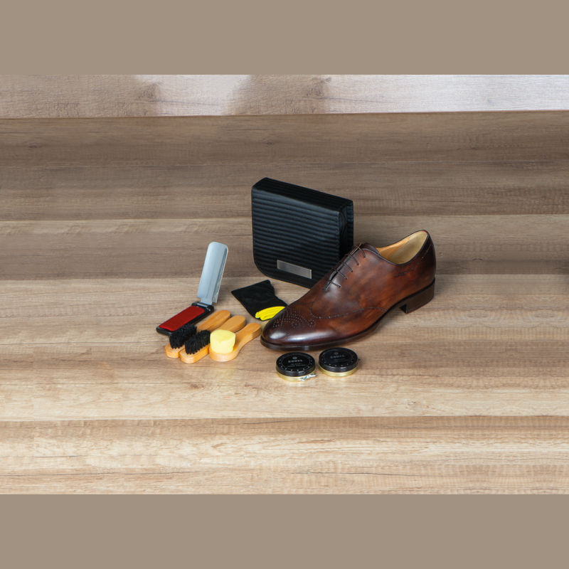Sada na čistenie topánok so všetkými doplnkami, ktoré potrebujete k čisteniu topánok, ako napríklad: pasta, kefa, handrička.