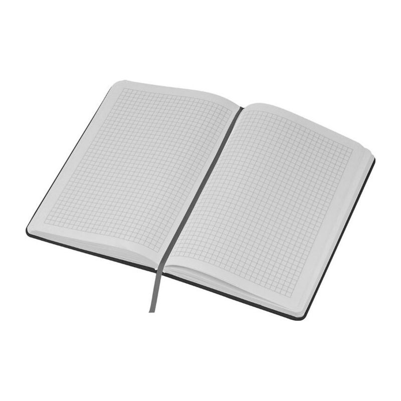 Zápisník vo formáte A5, 260 kockovaných strán (130 listov), záložkou a vreckom na pero.