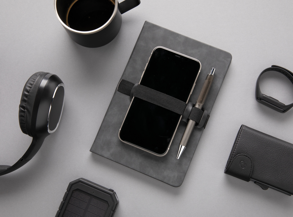 Prémiový PU zápisník A5 s priestorom na telefón a pero