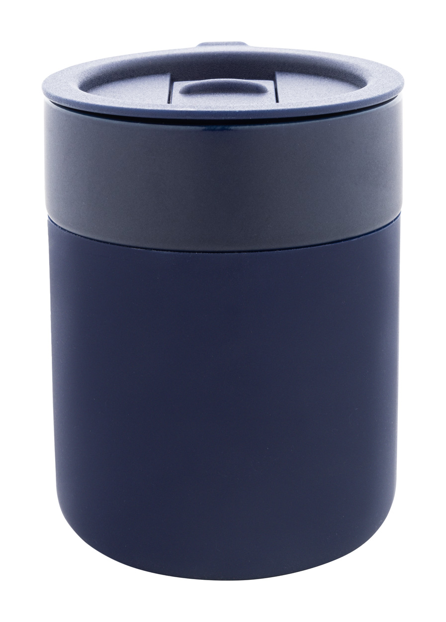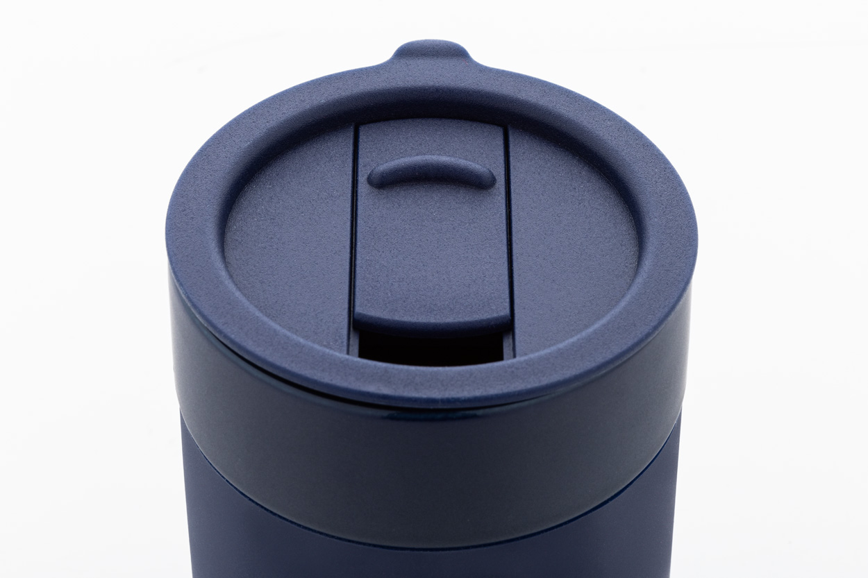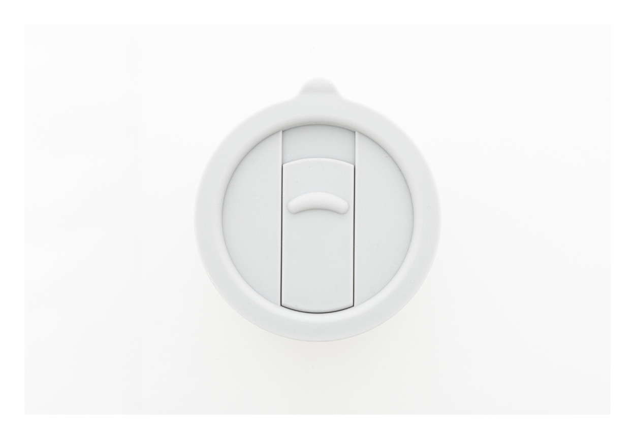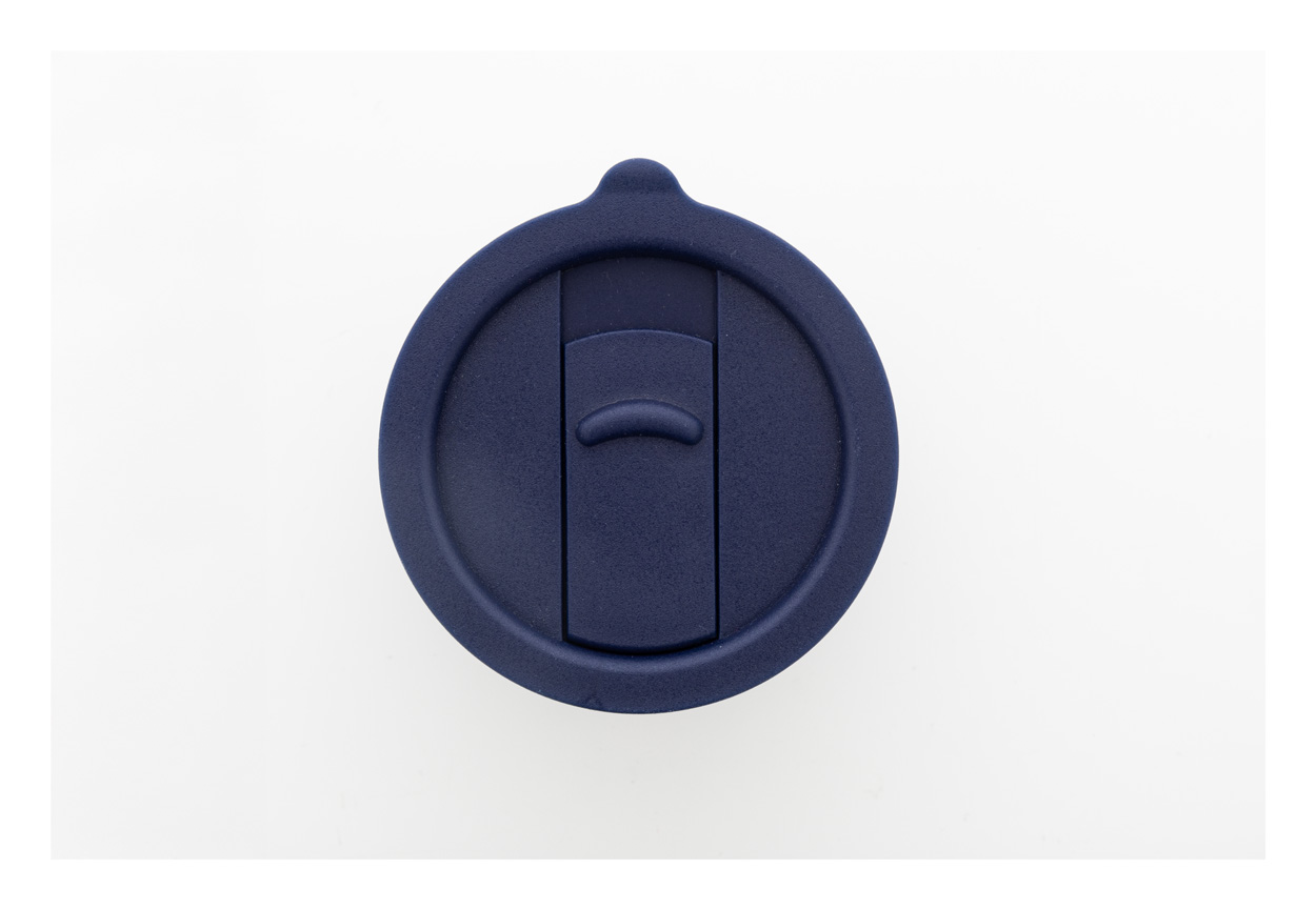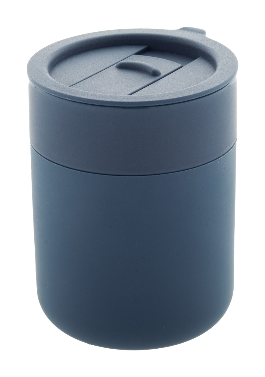 Silikónom potiahnutý keramický cestovný kelímok s PP plastovým odkvapkávacím viečkom. 300 ml.