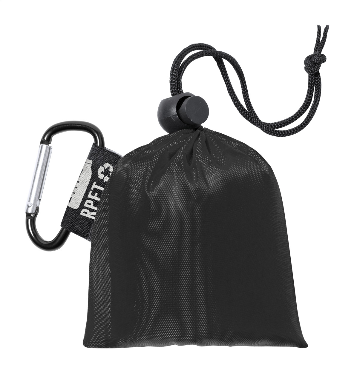 Transparentné LDPE pončo v jednej veľkosti pre dospelých. V RPET polyesterovom puzdre s výrazným štítkom RPET a hliníkovou karabínou.