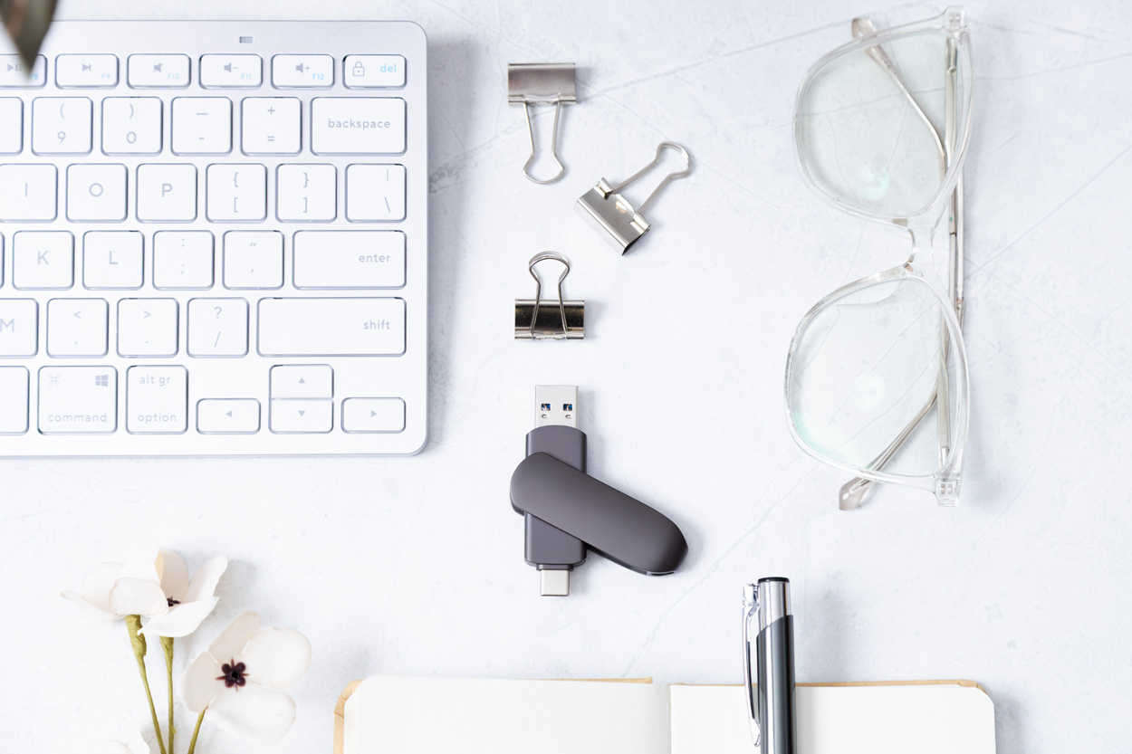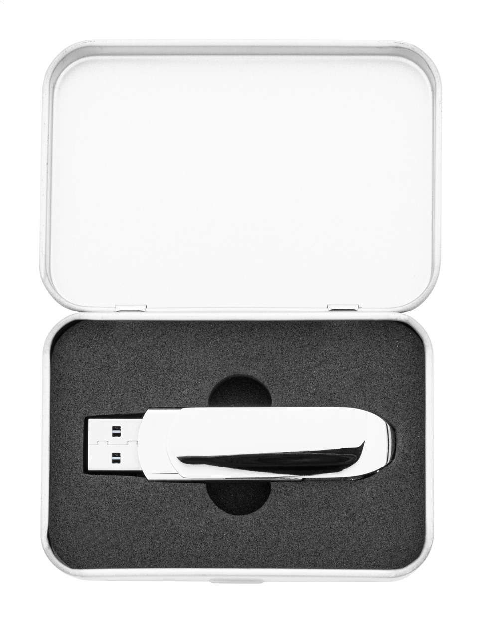 USB flash disk Twist OTG v kovovom puzdre s pamäťou 16/32 GB. S pripojením USB a USB-C. V plechovej krabici. USB 2.0.