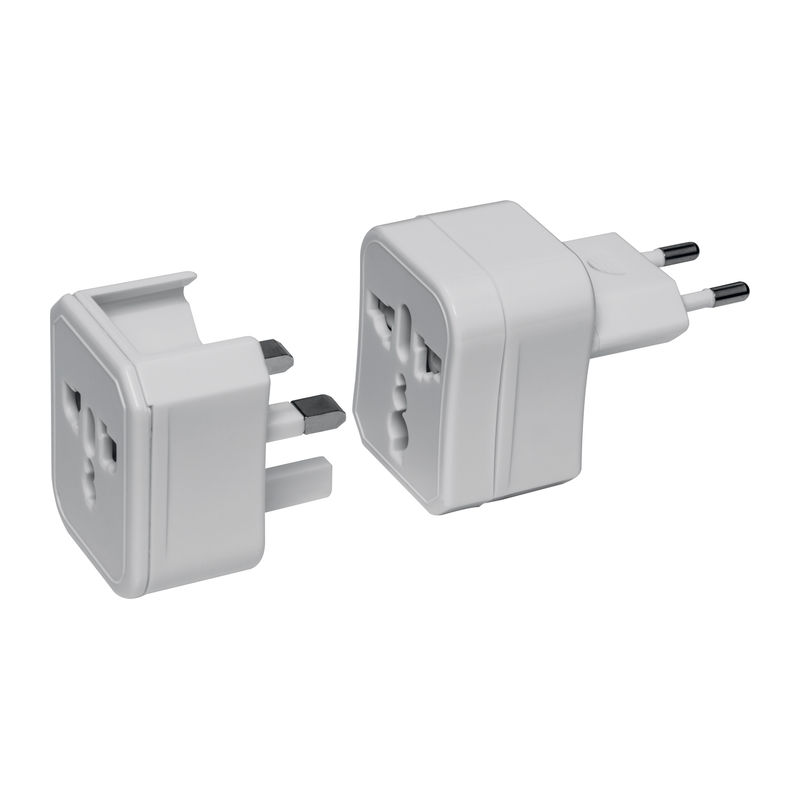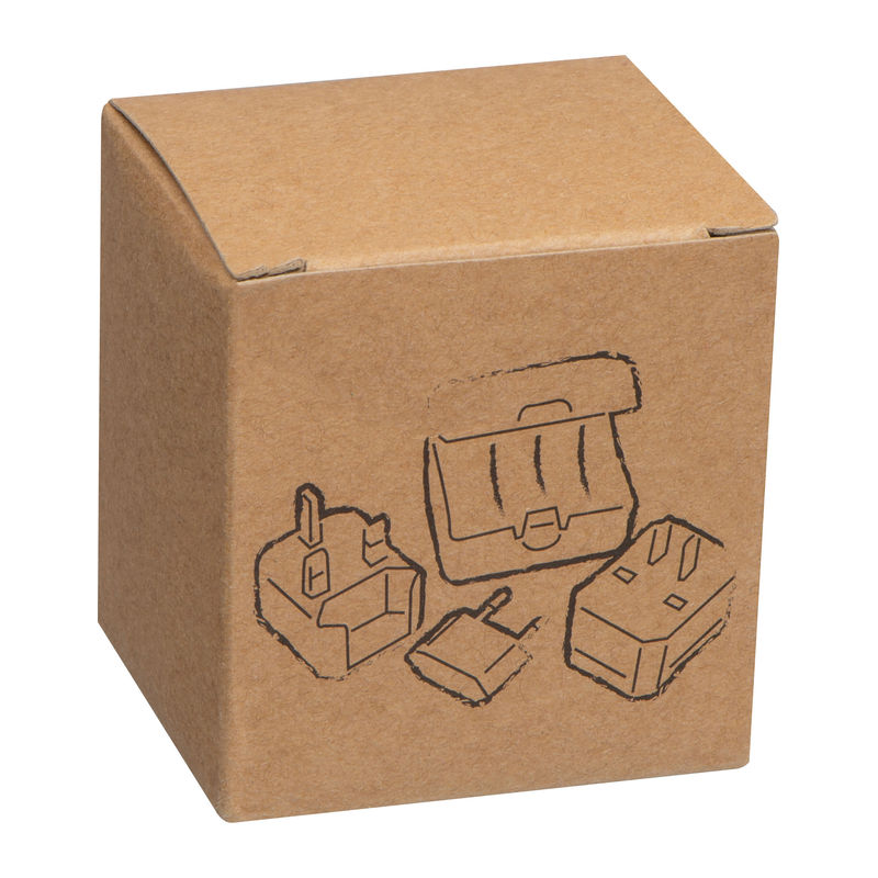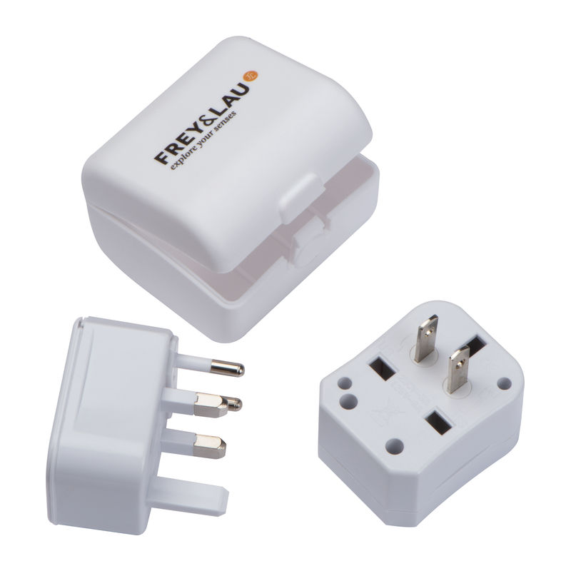 Cestovný adaptér v plastovom kufríku s adaptérmi pre USA, Veľkú Britániu, AUS a EU. Svoje zariadenie tak môžete nabíjať všade bez problémov.