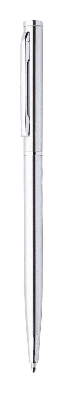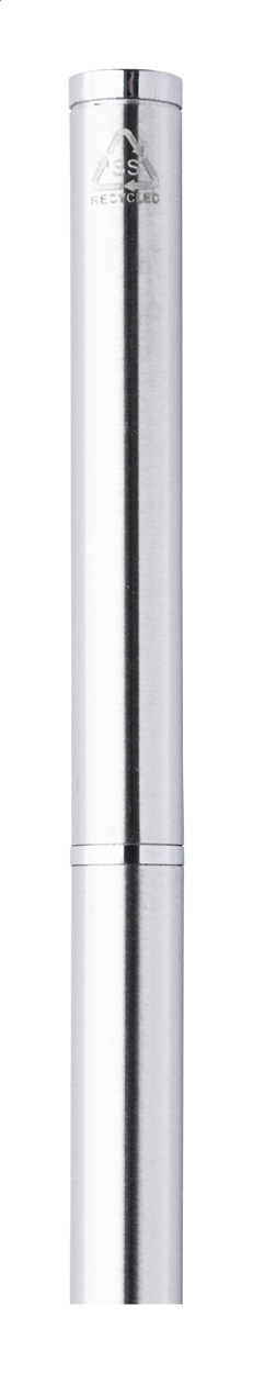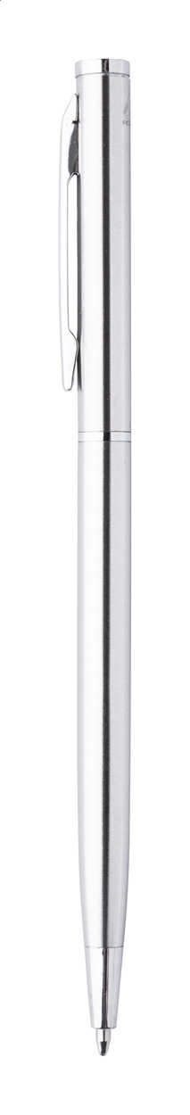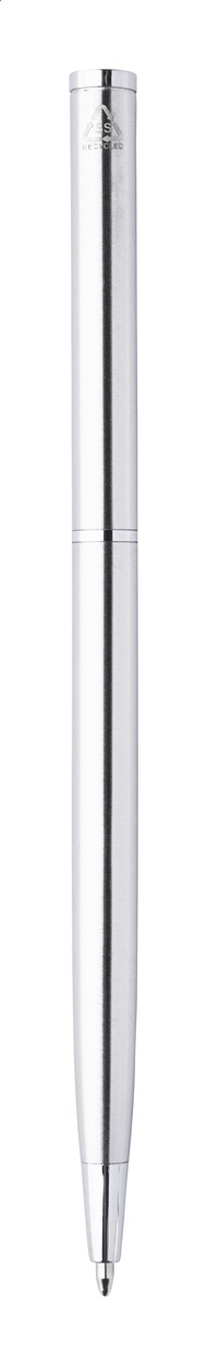 Recyklované guľôčkové pero z nerezovej ocele s chrómovanými časťami. S modrou náplňou.