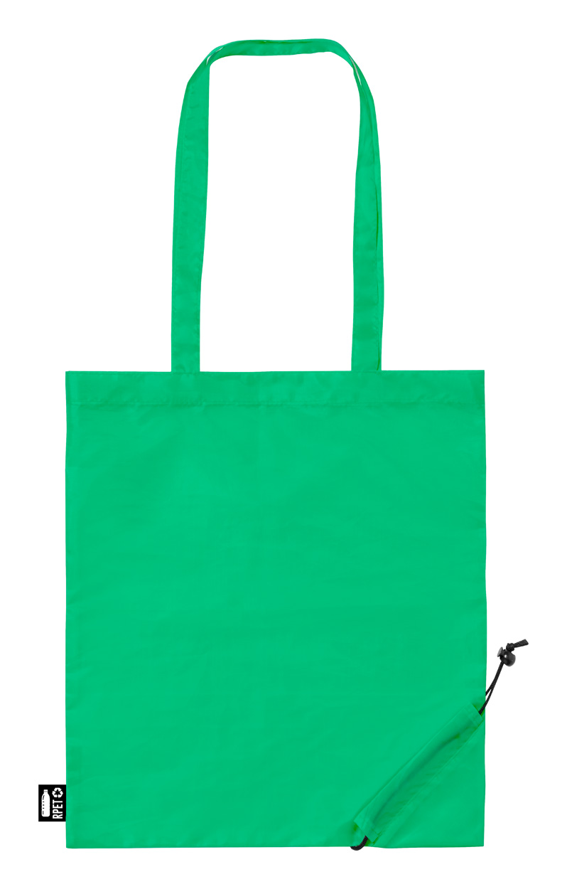 Skladacia nákupná taška z rPET s dlhými ušami. Polyester 190T RPET, s výrazným štítkom RPET.