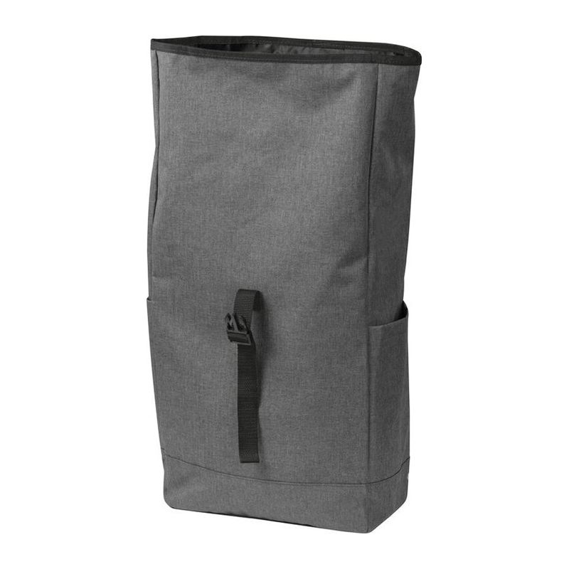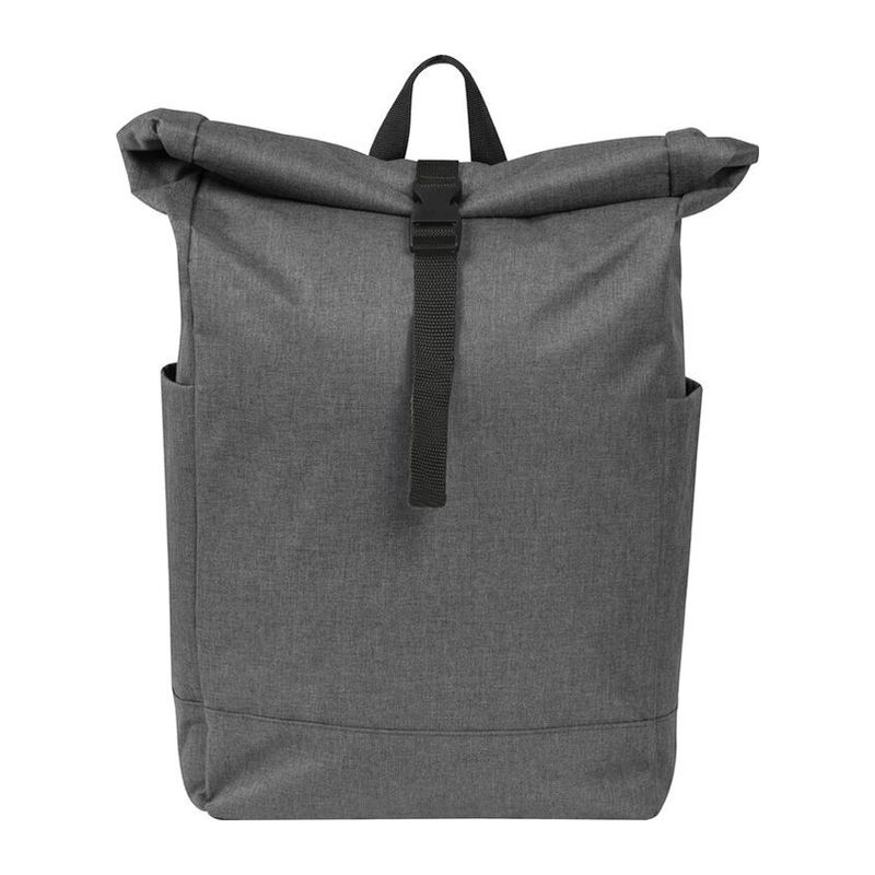 Štýlový batoh v sivej farbe zvýraznený farebným pásom na uzavretie, s vystuženými popruhmi z polyesteru. Batoh sa dá bezpečne uzavrieť jednoduchým skrútením alebo naskladaním