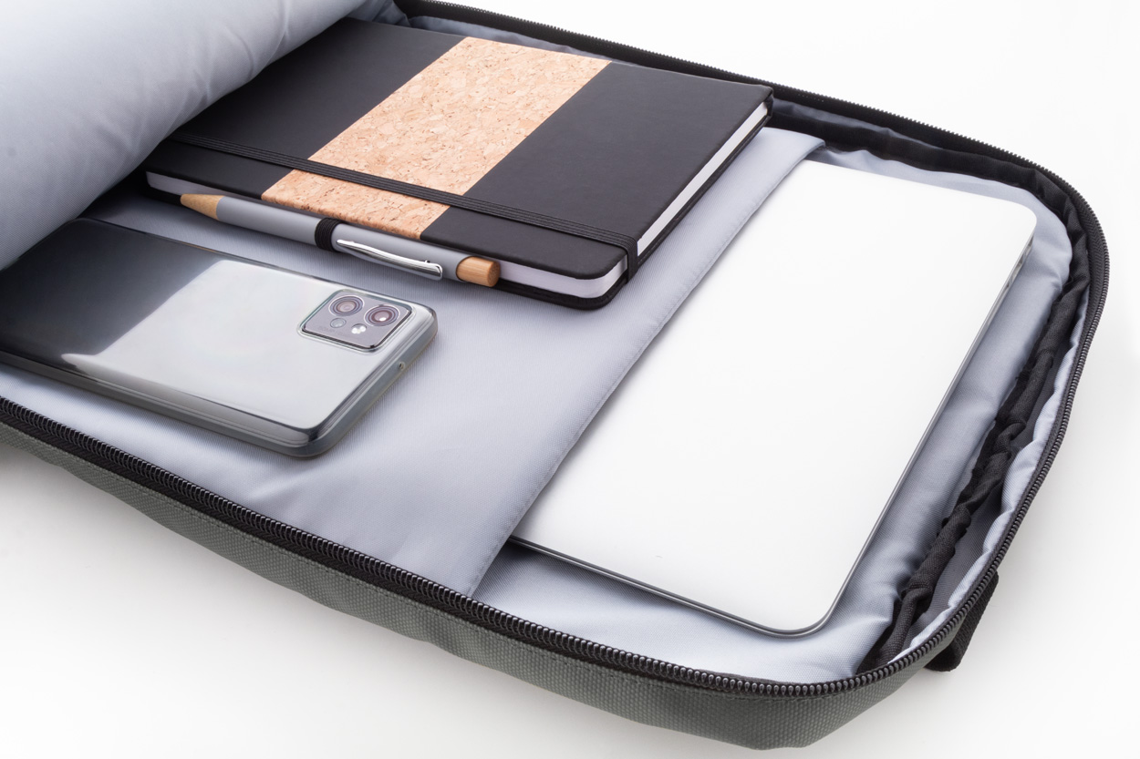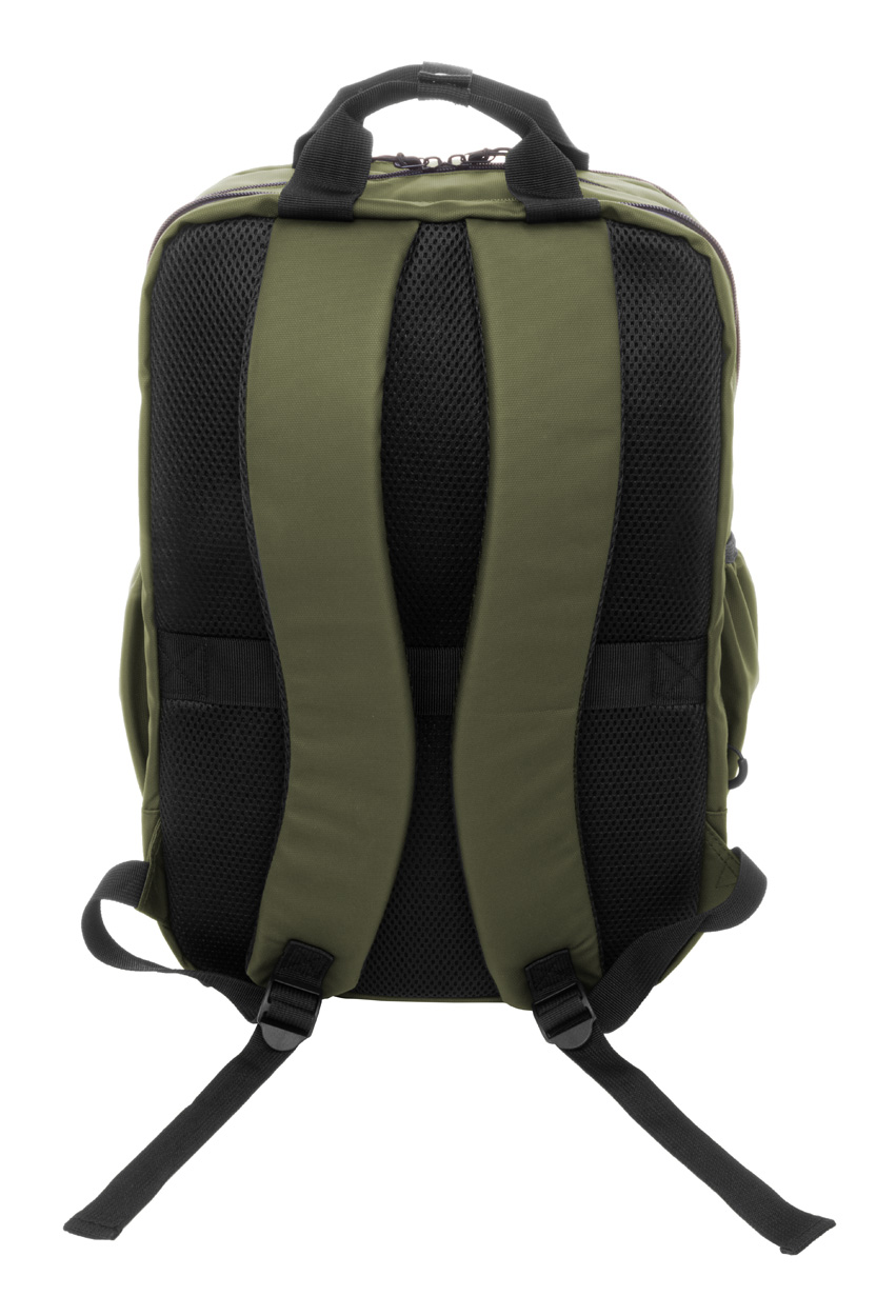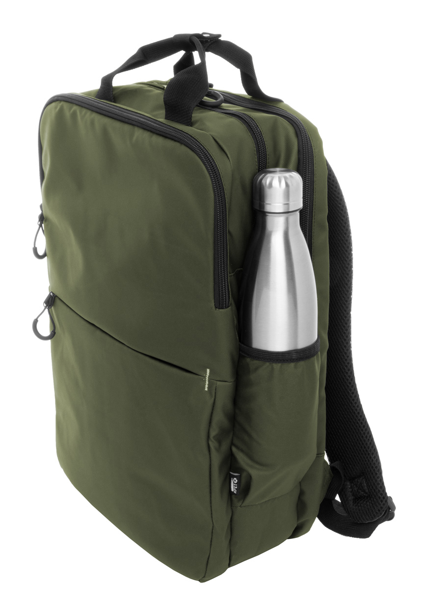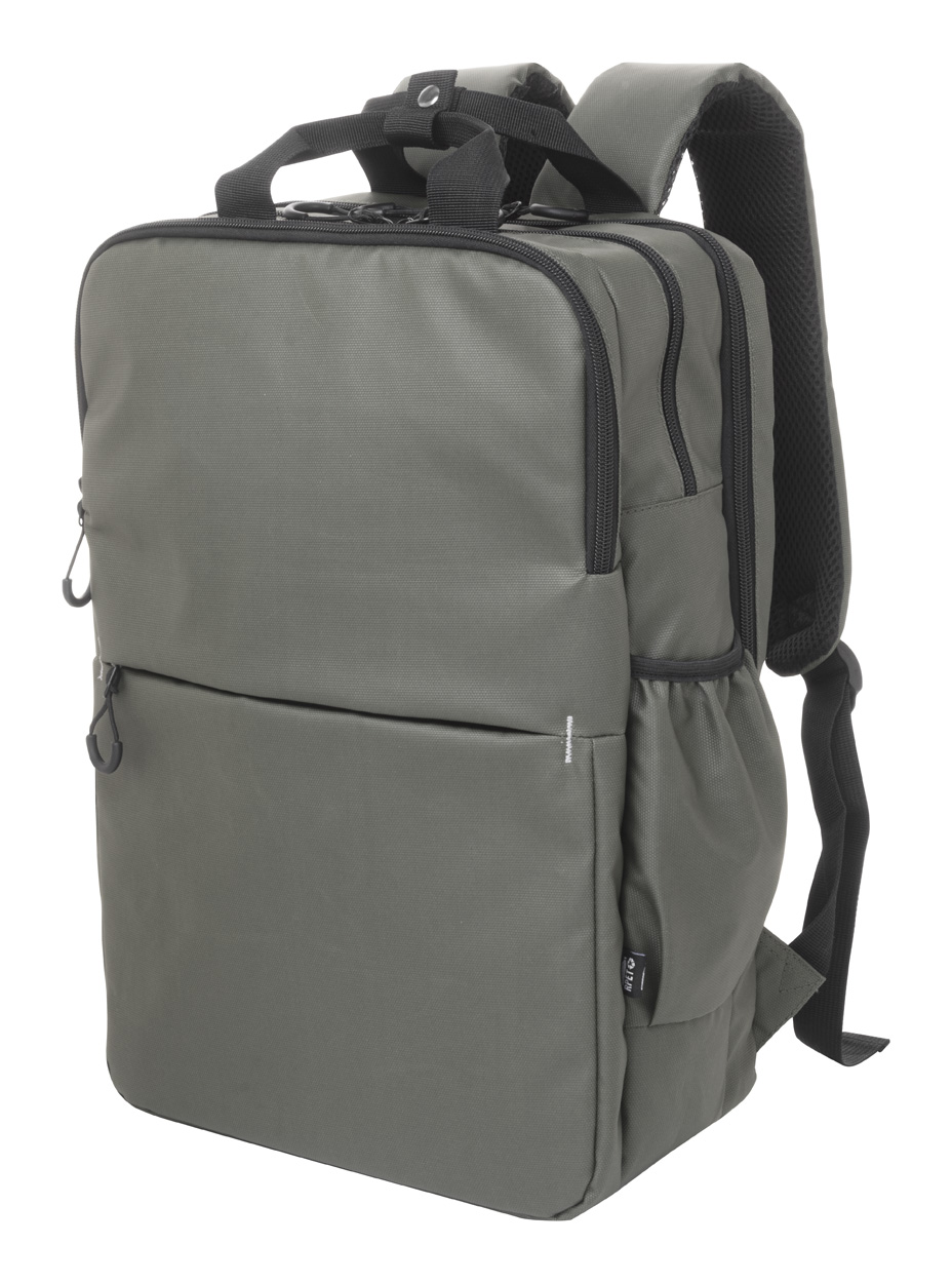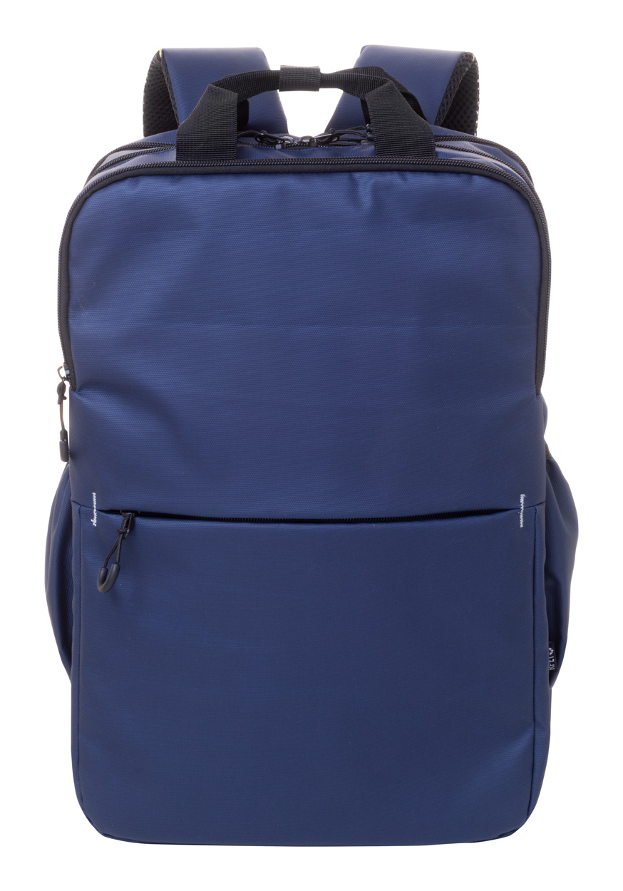 Vodotesný batoh RPET s 2 priehradkami na zips, 2 prednými vreckami na zips, bočnými vreckami a polstrovanou priehradkou na notebook (16″). S popruhom na vozík, polstrovaným chrbtom a ramennými popruhmi. Polyester 600D RPET potiahnutý PU, s výrazným.