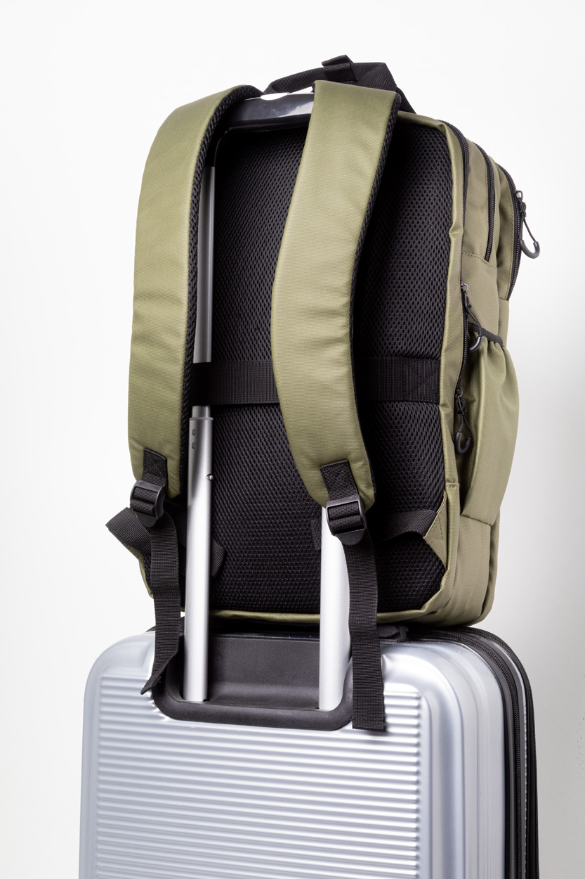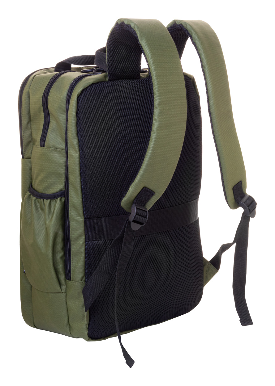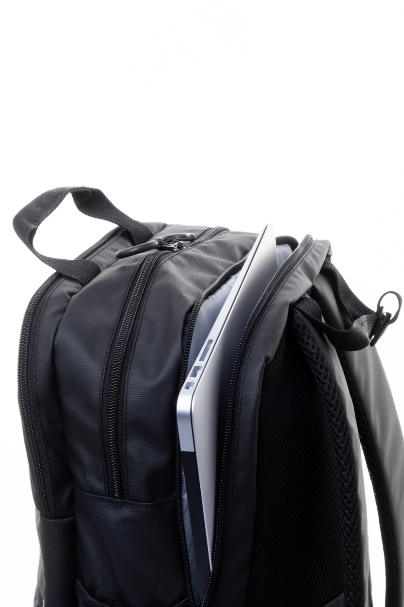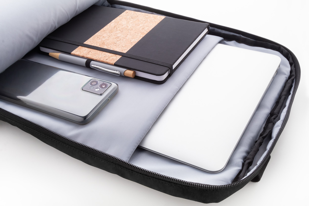 Vodotesný batoh RPET s 2 priehradkami na zips, 2 prednými vreckami na zips, bočnými vreckami a polstrovanou priehradkou na notebook (16″). S popruhom na vozík, polstrovaným chrbtom a ramennými popruhmi. Polyester 600D RPET potiahnutý PU, s výrazným.