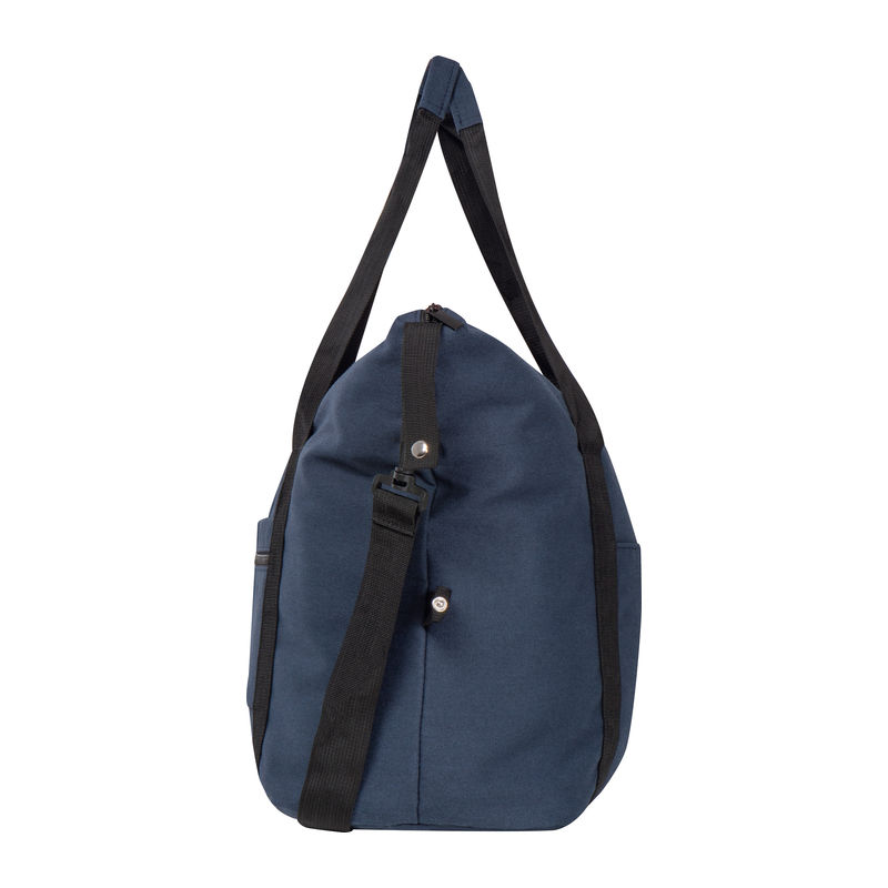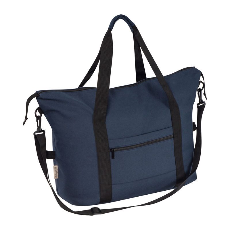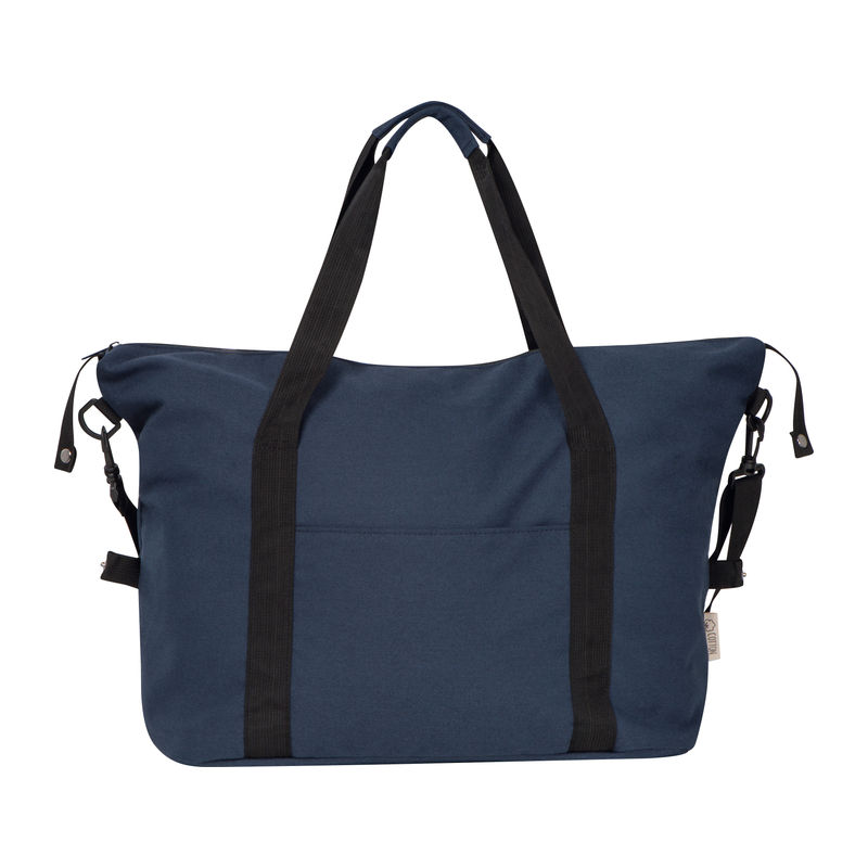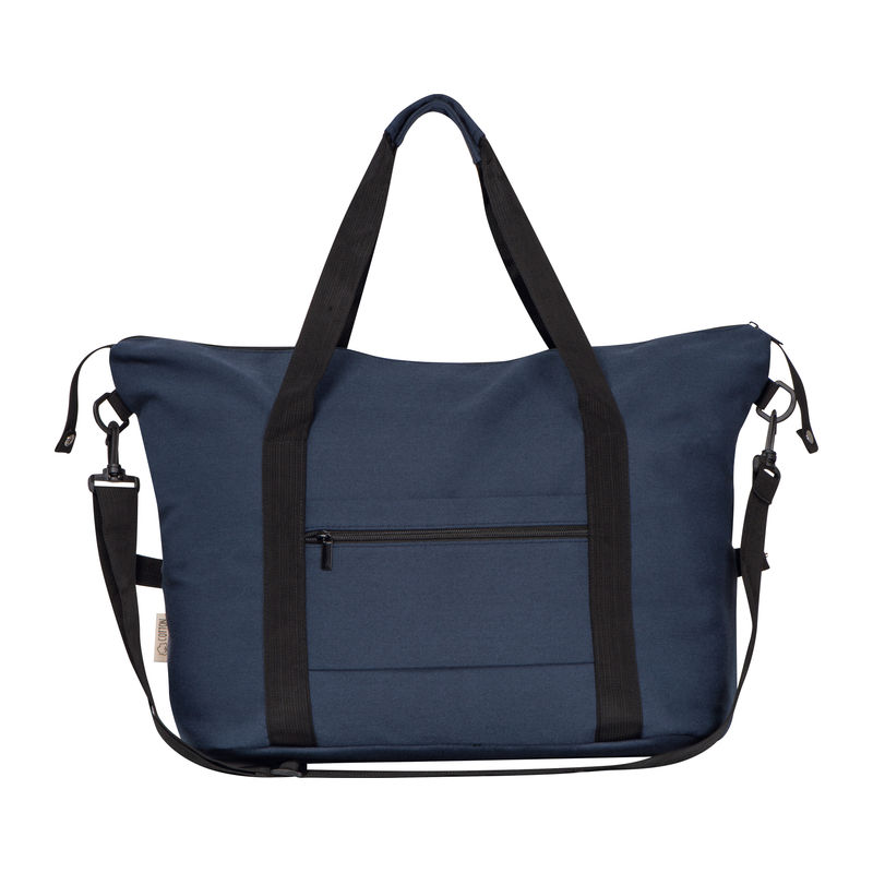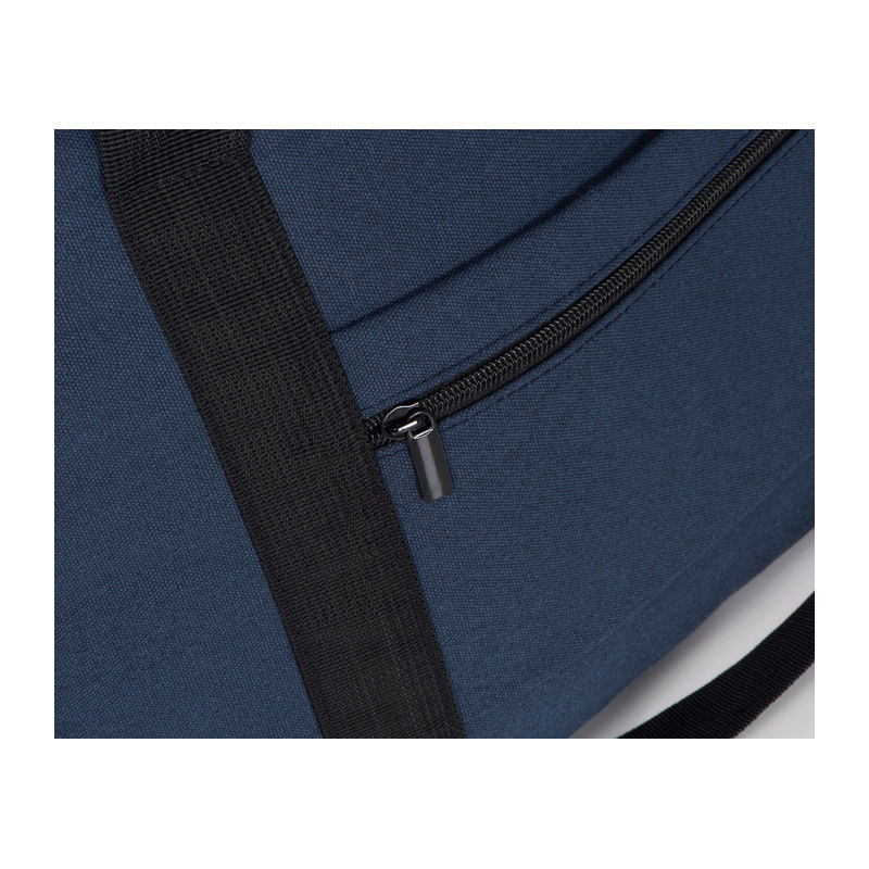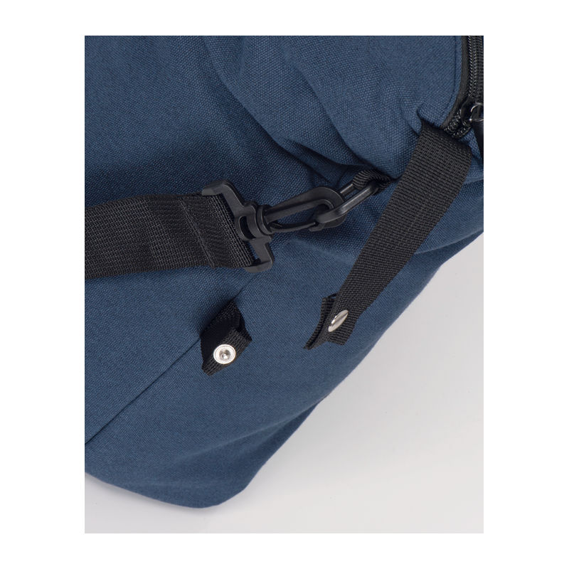 Športová taška vyrobená z recyklovanej bavlny ponúka veľa úložného priestoru a je perfektná na krátke výlety a šport. Nastaviteľný ramenný popruh je pripevnený karabín.