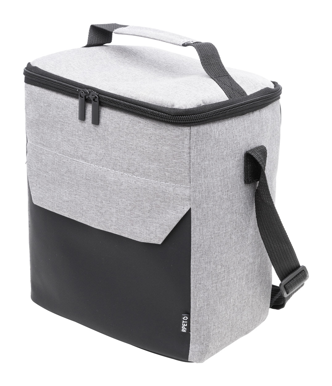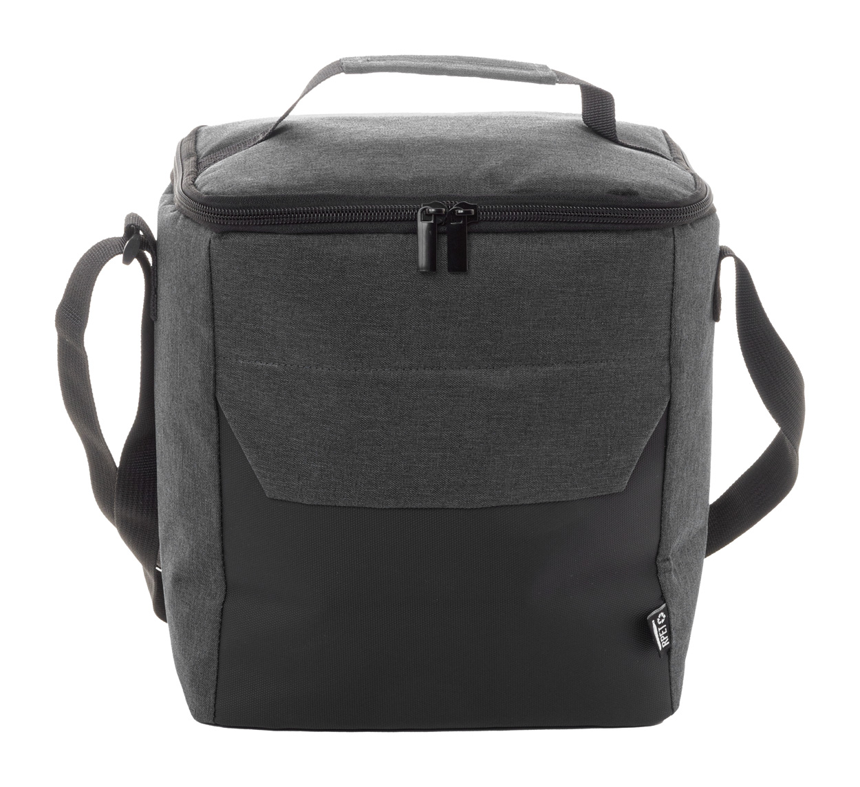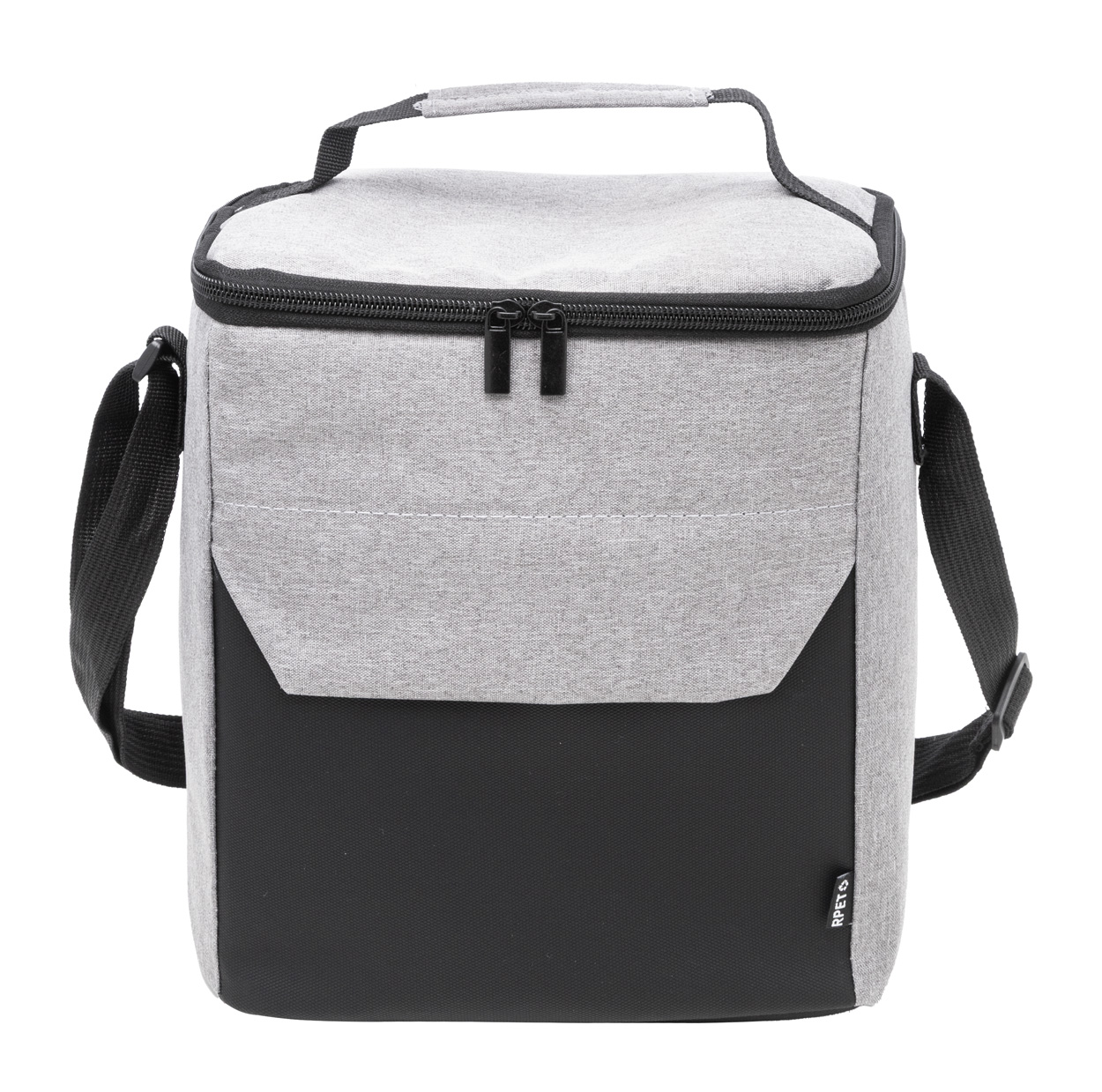 Chladiaca taška na zips z RPET s detailmi potiahnutými PU a PEVA vypchávkou. S rukoväťou, nastaviteľným ramenným popruhom a malým predným vreckom. 600D RPET polyester s výrazným štítkom RPET.