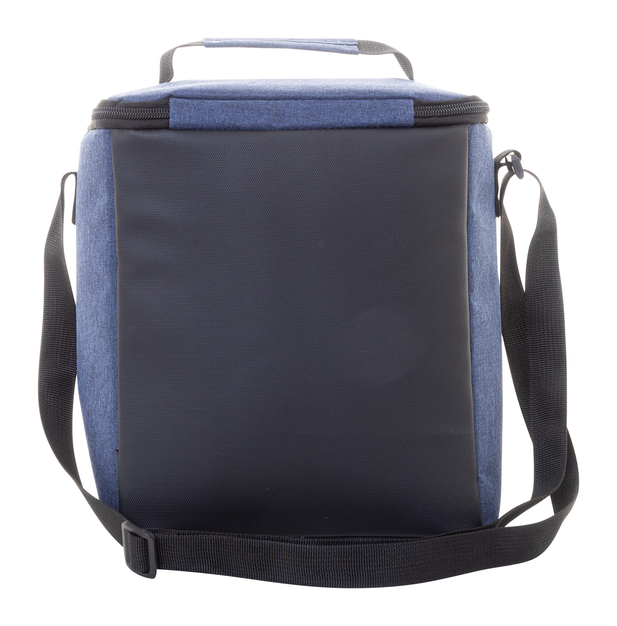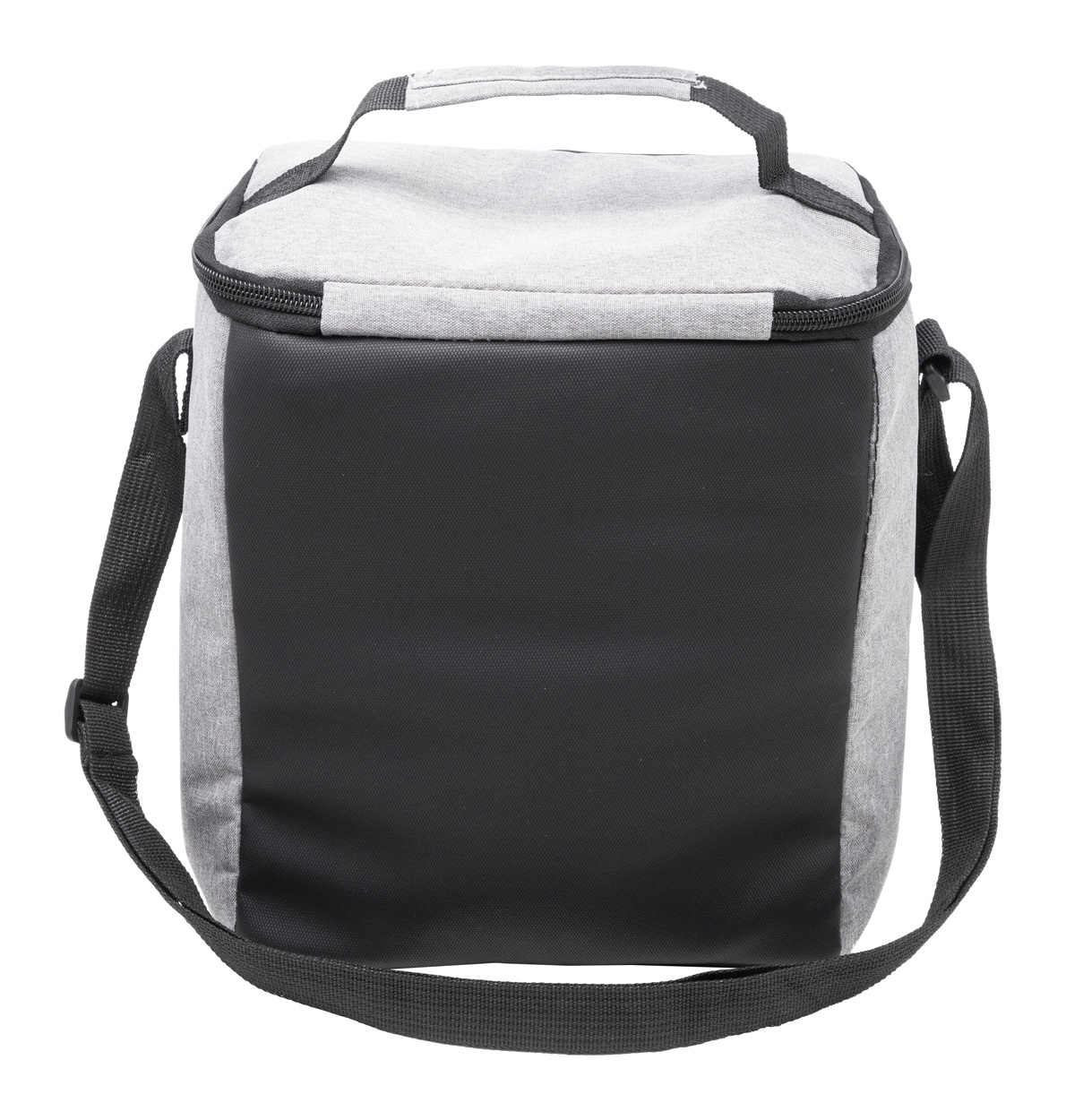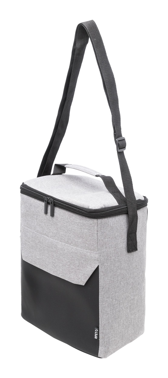 Chladiaca taška na zips z RPET s detailmi potiahnutými PU a PEVA vypchávkou. S rukoväťou, nastaviteľným ramenným popruhom a malým predným vreckom. 600D RPET polyester s výrazným štítkom RPET.